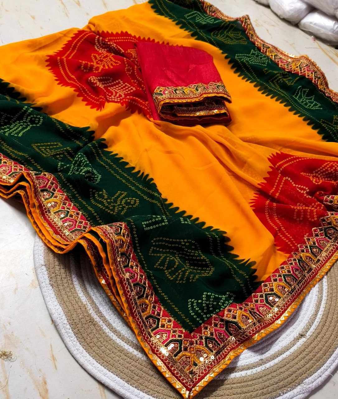 Saree Fabric : georgette with mill printed sarees design