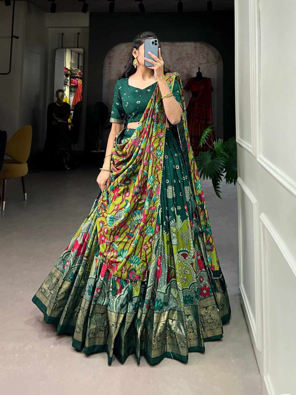 | Name : | PIYU 09-2 Silk Chaniya Choli With Viving Foil Green Lehnga |