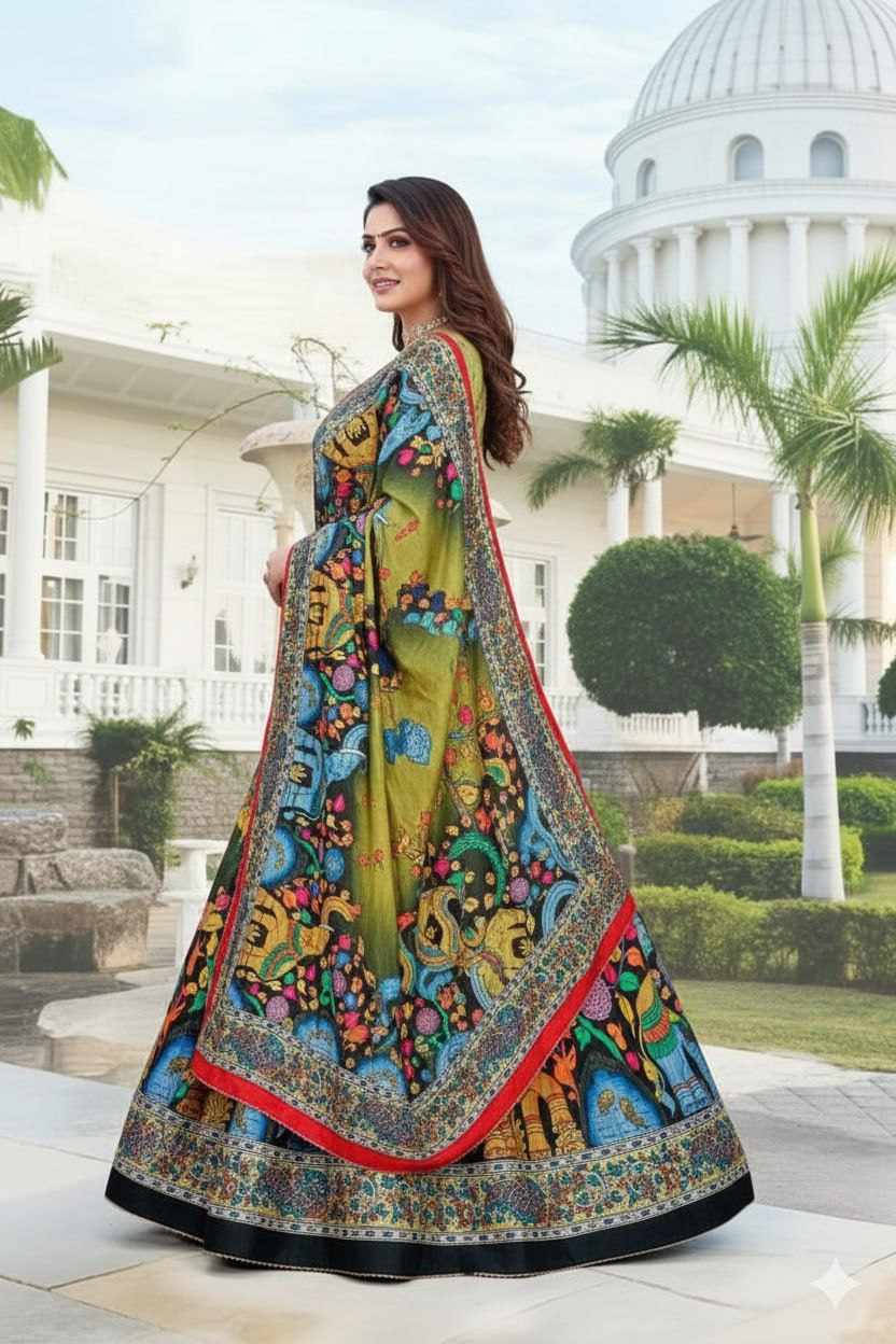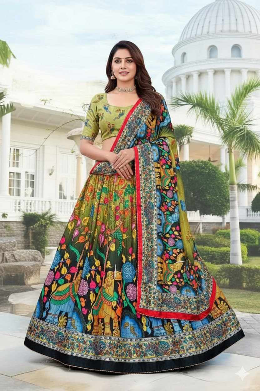 | Name : | PIYU 11-2 Silk Digital print Mehndi Lehnga |